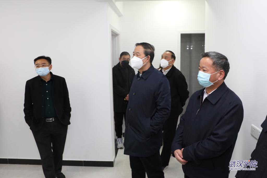 12月13日下午,beat365官方网站校长李忠云、校党委书记陈祖亮、副校长郑祝君、鲁先发、周承早、黄保红一行带队视察教职工公寓样板间建设情况。校长办公室、人事处、财务资产处、后勤保障处、宣传与公共关系处相关负责人陪同。