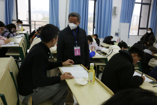校党委书记陈祖亮教授带队巡视学院楼一号楼、二号楼考场,对考务工作落实安排、考场环境秩序、监考人员履职尽责情况、学生答题状况等进行了一一巡查。