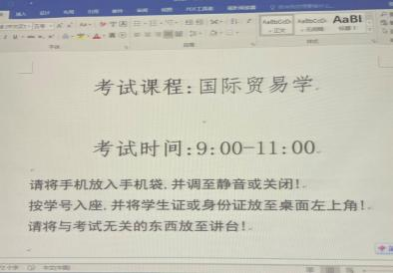昨天是全校学生春节后返校参加第二批考试首日,在学4502教室主监考的金融与经济学院蔡娇老师,在考场多媒体投影上写出考试、考纪提示。 此举既警示同学诚信应考,又彰显了考场文化。
