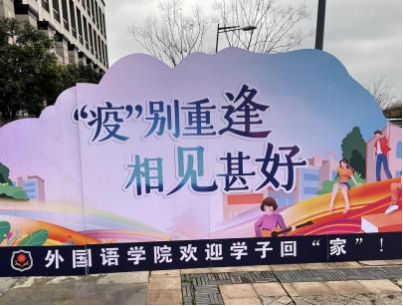 图为外国语学院在教学楼显要位置,摆出欢迎同学春节后返校宣传板,有效提升了同学们的亲切感和安全感,受到师生好评。