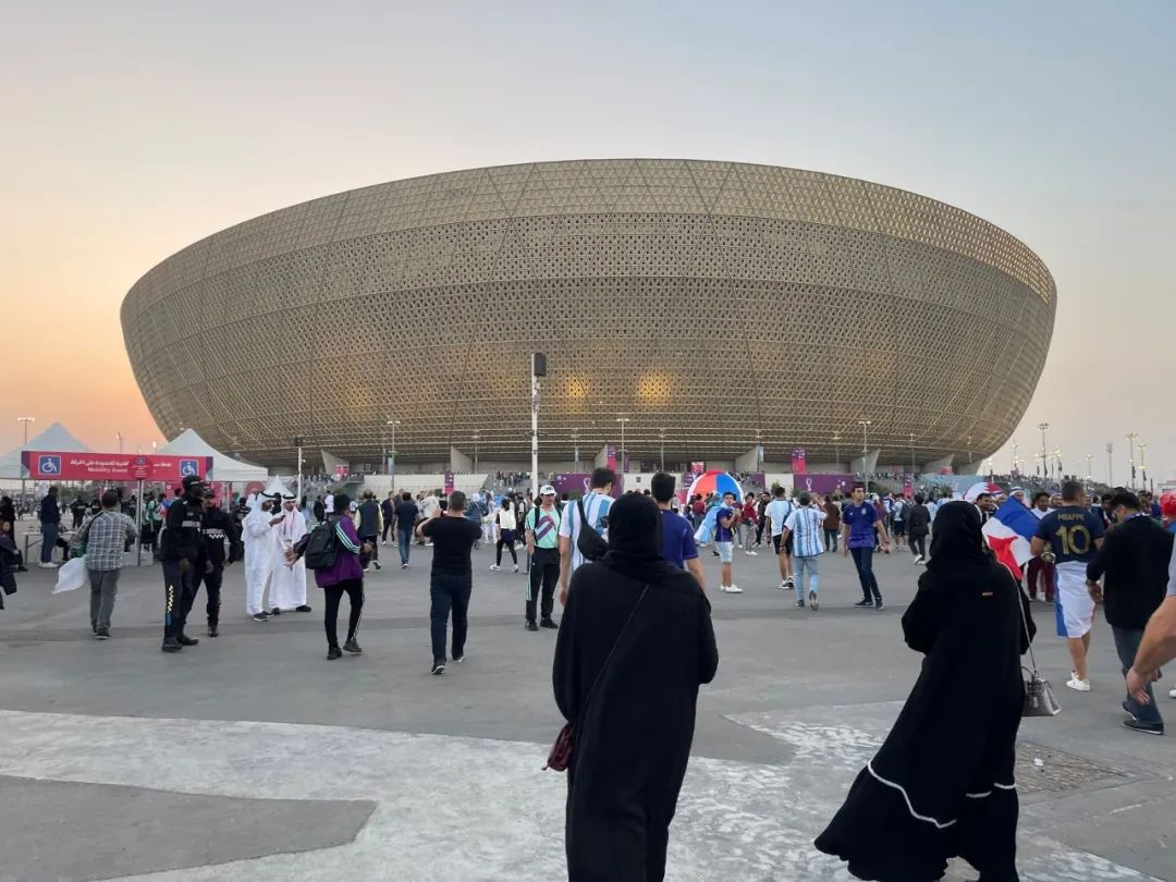 人流涌动中,我们挤了三次才挤进地铁,进入卢赛尔体育场(Lusail Stadium),一个沙漠中的“大金碗”球场。