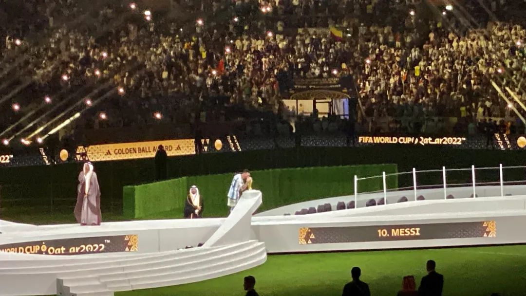 2022年卡塔尔世界杯决赛现场,梅西获得本届世界杯最佳球员奖