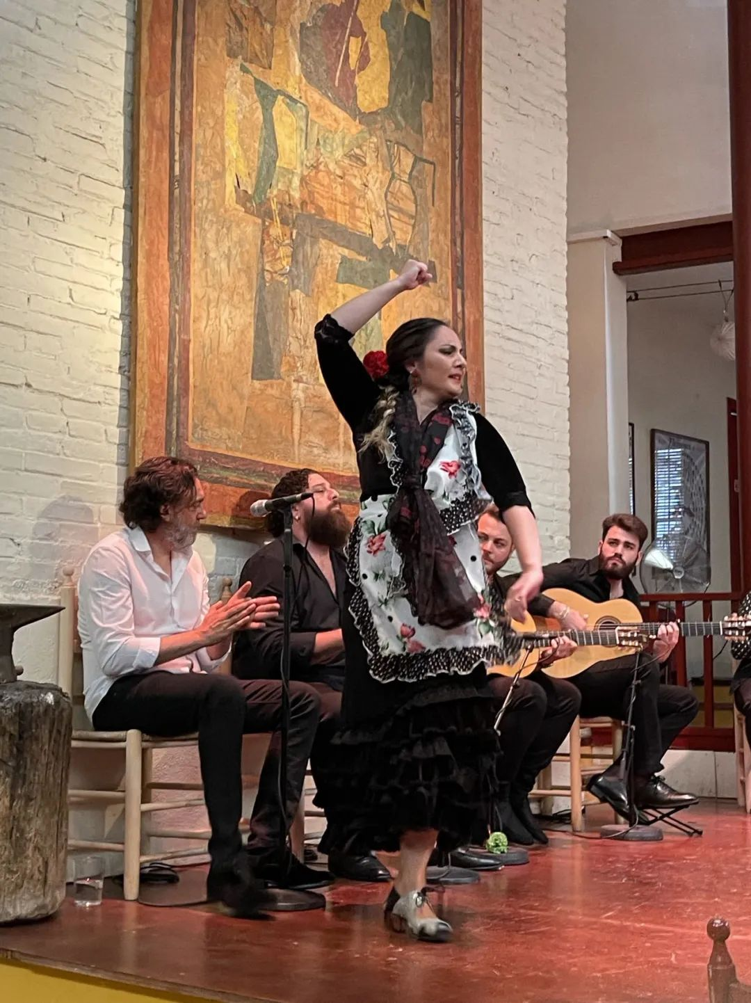这次也体验了西班牙特色舞蹈弗拉门戈(Flamenco)。这是一种即兴舞蹈,没有固定的动作,全靠舞者和演唱、伴奏的人以及观众之间的情绪互动。