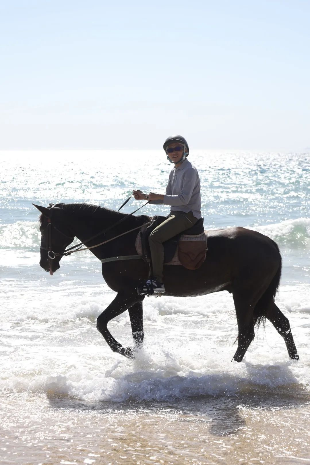 葡萄牙沿海有着许多不同地貌、风光独特的海滩。其中孔波尔塔(Comporta)海滩海天一色,海岸线两头都遥望无际。在当地熟练向导的带领下,我们体验了一把波光粼粼的“骑马踏浪”。
