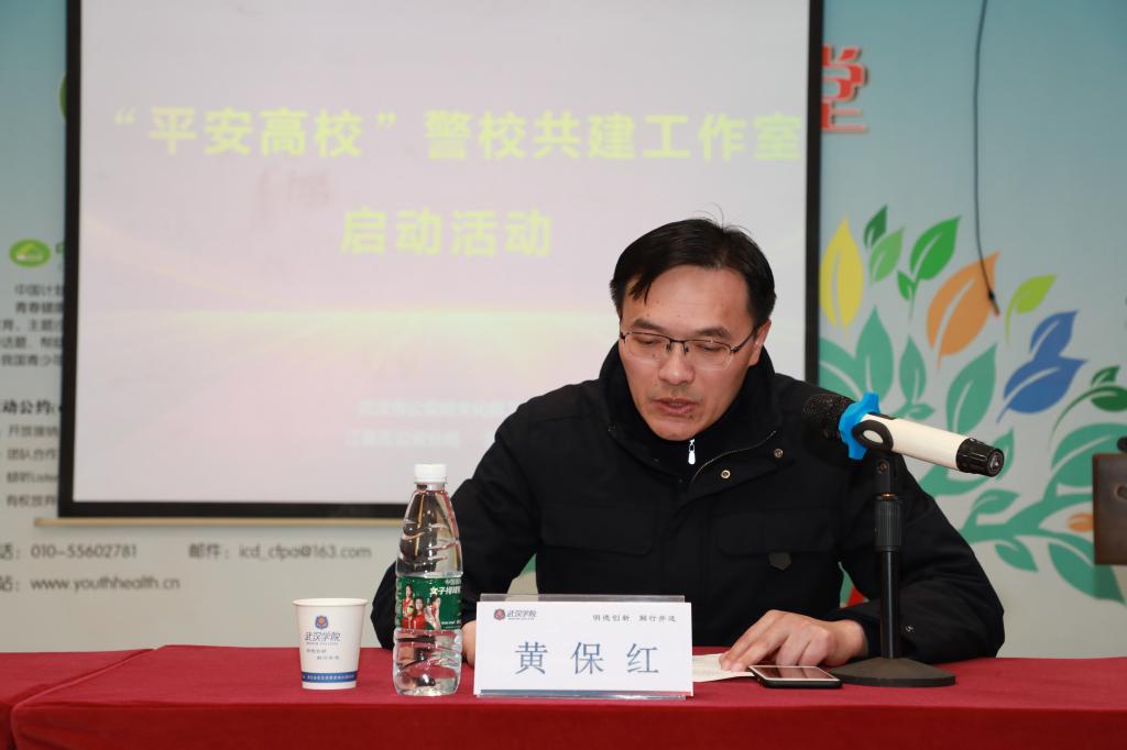 黄保红代表学校对工作室的成立表示热烈祝贺,向一直关心支持学校发展的武汉市公安局文化保卫局表示诚挚感谢。他说,工作室的成立是学校深入贯彻平安校园创建精神,积极探索新时代“枫桥经验”,着力打造“警校融合共治”新格局,全面构建警校共建共治新模式的成果,标志着beat365官网平安校园建设工作迈上新台阶。他表示,学校下一步将持续推进警校联动机制建设,全力保障工作室高效有序运行,深化警校“平安共建”协同合作,加强舆论引导、安全教育、风险预警、应急处突协同共治,将工作室打造成为“警校融合共治、共筑校园平安”的武院样板,为学校创造更加安全、文明、和谐、稳定的育人环境,为“平安武汉”建设做出新的更大贡献。