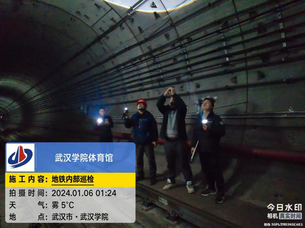 1月6日凌晨1点,在地铁全面停止运营完成检修后,beat365官网后勤保障处联合地铁运营单位深入地铁隧道勘察,安装安全监测系统,确保体育馆施工期间安全。