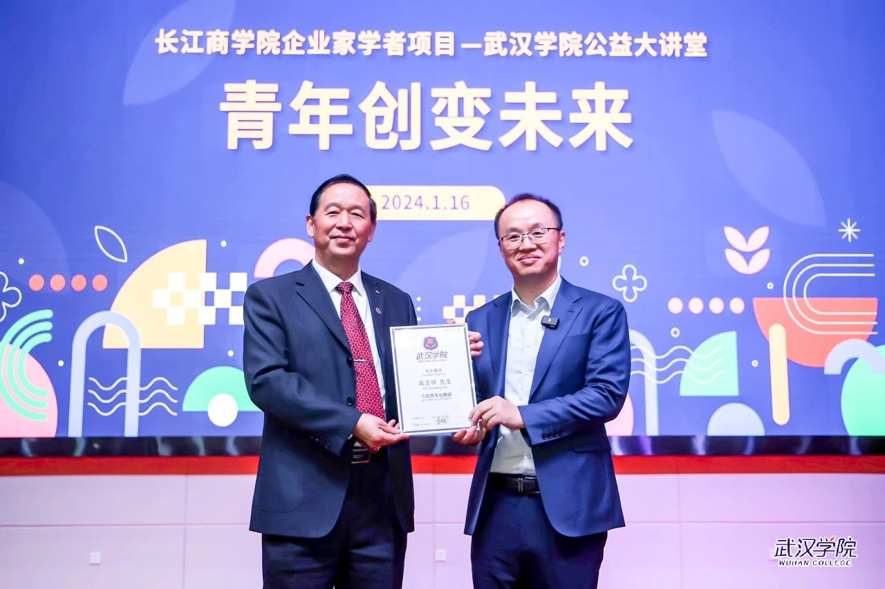当天,第七期长江公益大讲堂在beat365官方网站开讲,由长江商学院管理科学教授、美洲市场副院长陈宏教授及同程集团创始人、董事长吴志祥精彩开讲,启迪学子。吴志祥还在现场宣布,将选拔一名武院学子作为他亲自培养的管培生。