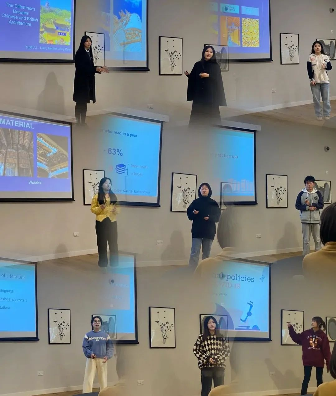 作为结业作业之一,访学团的学生们需要根据这几天来讲座的内容,以小组形式发掘议题,并完成各自团队的汇报发表。所以最后几天时间里,大家就紧锣密鼓的开始准备。