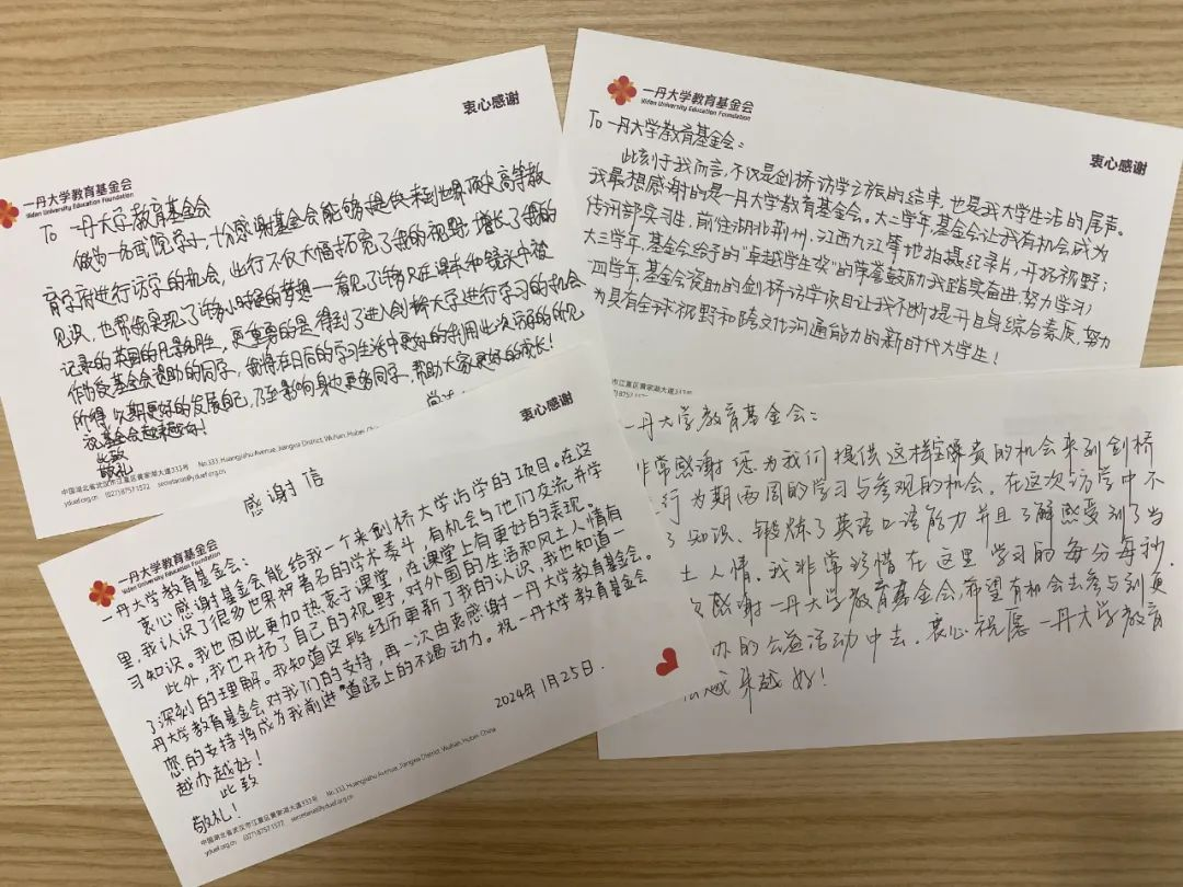 来自访学团对一丹大学教育基金会的感谢信