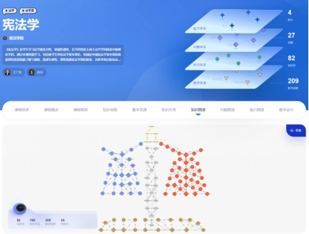 《宪法学》AI课程以可视化的方式展现知识关系网络,以结构化的形式描述课程内所包含的知识点、教学资源、教学活动、测评方式之间的关系。在课程建设过程中,课程团队针对不同阶段建设任务,完成了数次研讨,确立课程目标,挖掘课程特色,搭建知识框架。通过AI技术的引入,知识点挂载相应教学资源,从而实现学生基于单个知识点的深度学习,为学生提供了更加智能化、高效的学习模式。通过基于知识图谱的教学场景设计,以及个性化学习的实现,学生可以根据自己的学习需求和兴趣进行自主学习,实现知识的深度理解和应用。