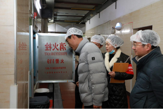 △督察组一行检查食堂后厨消防设备
