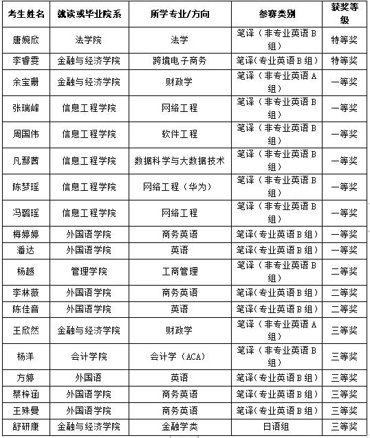 第30届湖北省翻译大赛复赛结果近日公布,经过激烈比拼,beat365官网19名参赛学子获奖,其中特等奖2人,一等奖8人,二等奖3人,三等奖6人。