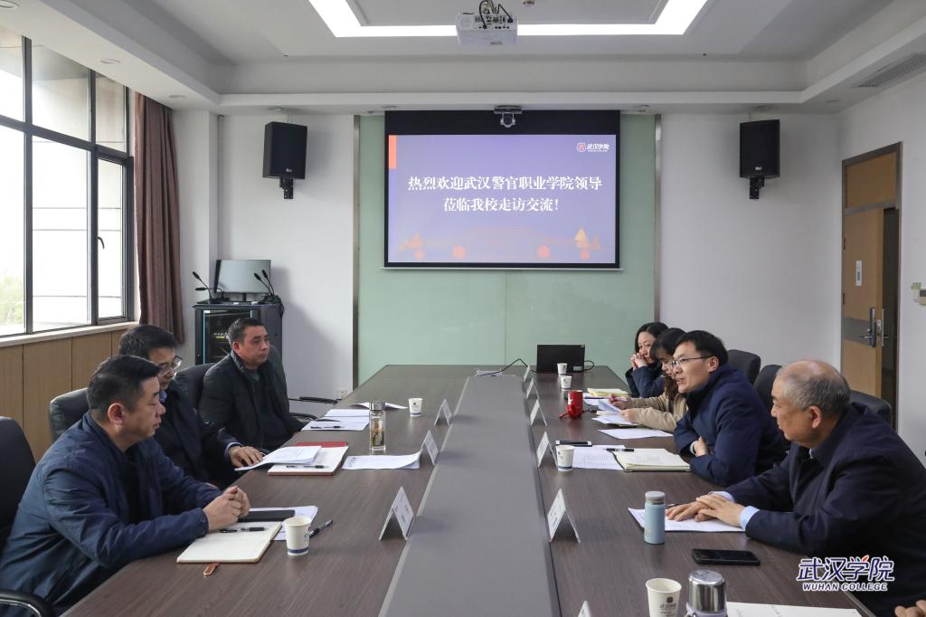 3月18日下午,武汉警官职业学院党委副书记、副校长郭泽强、副校长潘东升一行来beat365官网调研交流。校党委副书记、副校长黄保红在行政楼204会议室热情接待来宾,双方围绕普通本科高校与高职院校联合培养技术技能型人才试点工作开展座谈交流。教务处、学生工作处和法学院相关负责人参加座谈。
