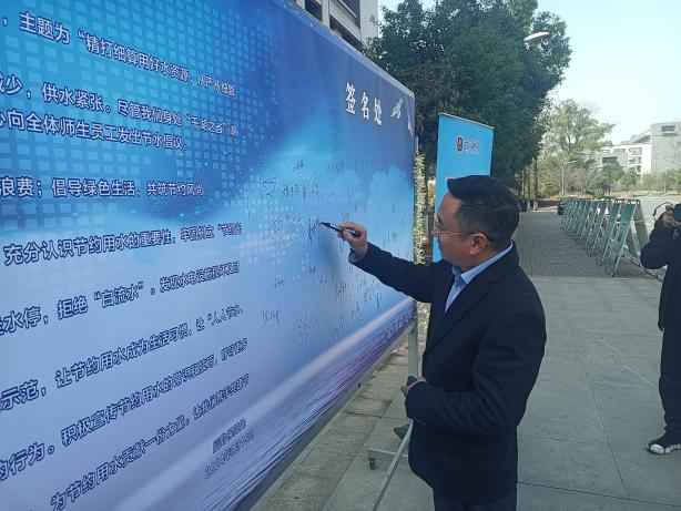 3月18日,后勤保障处向全校发布《节水倡议书》,并在展览现场设置节水倡议书签名墙,在签名墙前,师生们纷纷驻足,认真阅读节水倡议书,并在倡议书上签下自己的名字,以示支持和积极践行节水行动。
