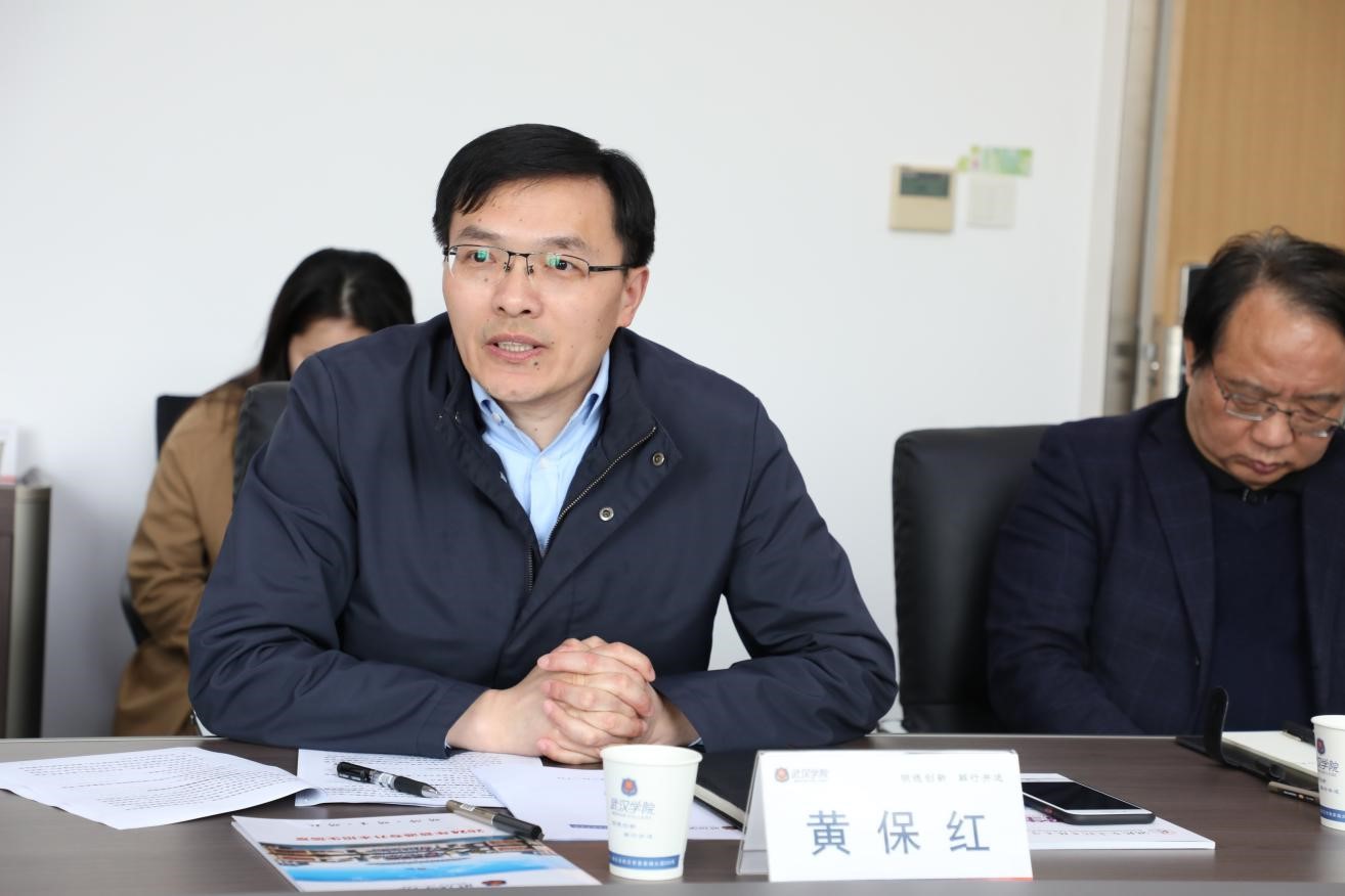 黄保红向来宾介绍了学校专业设置、招生就业等情况。他表示,双方未搬到新校区时位置相邻,拥有紧密的邻里关系,给双方合作奠定了良好的基础,希望能在专本联合培养方面建立合作,也希望在专升本招生工作上得到湖北交通职业技术学院的支持。