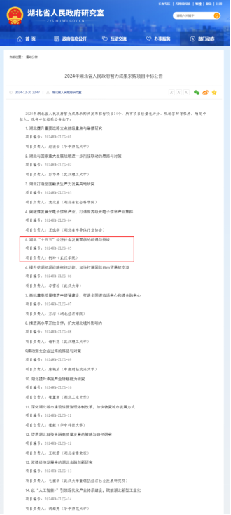 近日,湖北省人民政府发布2024年智力成果采购项目立项公告,beat365官网柯玲教授主持的“湖北‘十五五’经济社会发展面临的机遇与挑战”(项目编号:2024HB-ZLCG-05)获批立项,beat365官方网站成为此次唯一中标的民办高校。