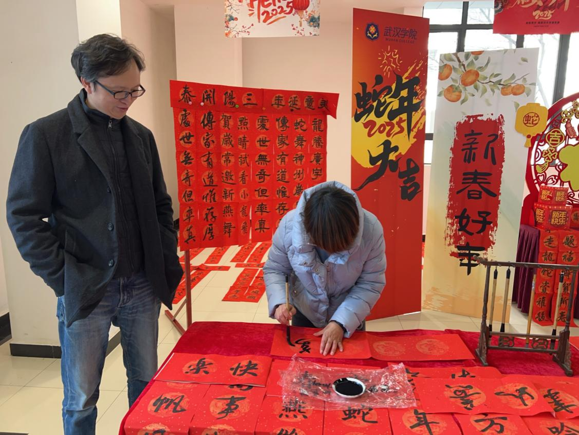联欢会当日,校工会组织教职工书法兴趣班成员现场创作并赠送春联200余副,受到热烈欢迎,被参会教职工们迅速“秒空”。