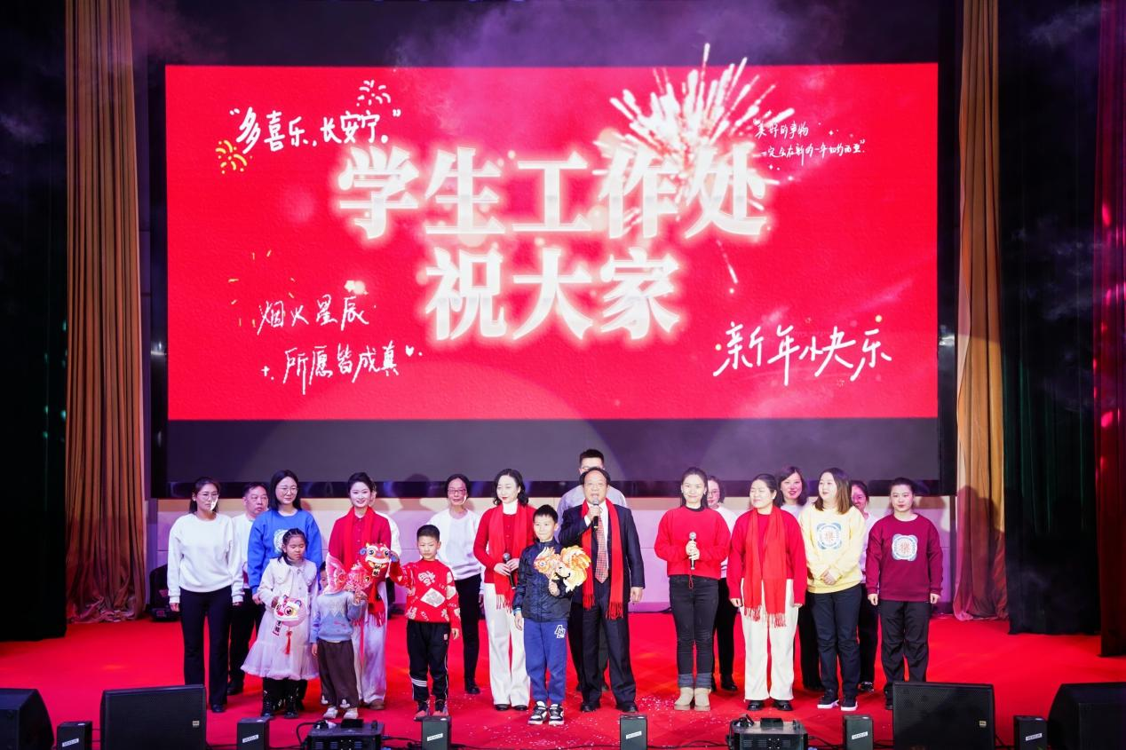 金蛇献瑞迎新年,盛世如歌谱华章。1月15日下午,beat365官网2025年“同心聚智绘宏图,砥砺奋进谱华章”迎新春教职工联欢会在刘炽平报告厅隆重举行。beat365官方网站创办人、校董会主席陈一丹、校董会成员李祖兰、特邀嘉宾香港都会大学校长林群声、副校长郭予光、发展及校友事务处总监谢凯笳、全体校领导及全体教职员工欢聚一堂,共同庆贺即将到来的蛇年新春。