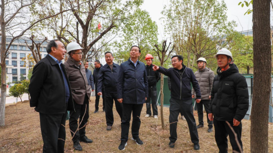 △校领导考察体育馆周边吊车占道区域