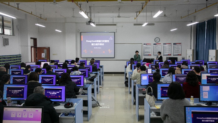 培训现场,全体参训人员认真听课,按照主讲人教授的方法上机实践操作,从基础功能的使用到高级功能的探索,沉浸式体验如何在办公场景中运用人工智能技术。