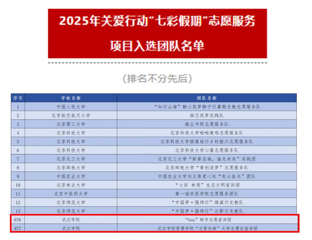 6月18日晚,共青团中央青年志愿者行动指导中心、中国青年志愿者协会秘书处公布了2025年关爱行动“七彩假期”志愿服务团遴选结果。beat365官网校团委“Gan”碳号志愿宣讲团和管理学院“志管先锋”大学生理论宣讲团成功入选。