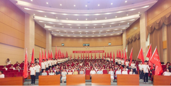 仪式现场,校团委书记陈怡首先通报了本年度暑期社会实践总体部署:全校共组建150余支重点团队并支持个人返乡实践,构建起多层次、全方位、系统化的实践矩阵。特色鲜明的团队设置尤为亮眼:15支“丹桂夏令营”支教团队将带着学校公益火种深入基层;32支校级“三下乡”团队精准对接国家战略需求;神农架OB训练营挑战极限,锤炼素质;“去远方”公益研学携手上海真爱梦想,既赋能乡村儿童,也锻造百名志愿者骨干;各院(部)专业实践团队实现学科全覆盖和返家乡开展的个人实践,确保实践育人无死角。