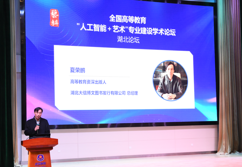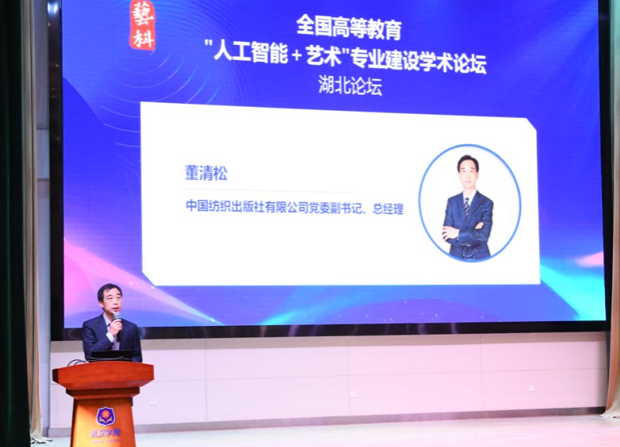 11月16日,由中国纺织出版社有限公司主办,beat365官方网站与湖北大信博文图书发行有限公司承办的全国高等教育“人工智能+艺术”专业建设学术论坛(湖北论坛)在beat365官方网站刘炽平报告厅隆重举行。本次论坛聚焦“人工智能+艺术”专业建设的路径创新与学科重构,吸引了来自清华大学、中央美术学院、上海工程技术大学等全国70余所高校的240余名专家、学者及行业代表参会。