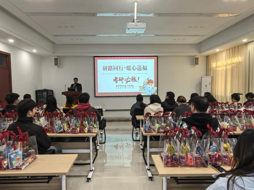 信息工程学院举办了一场“研路同行・暖心送福”主题考研动员大会。院长为学子送上深情寄语,党总支书记、副院长陈斌分享“稳、健、安”三重心声,从心态调整、复习策略、身心健康等方面为学子加油鼓劲、提振信心,现场还为大家发放考研福袋,传递满满正能量。