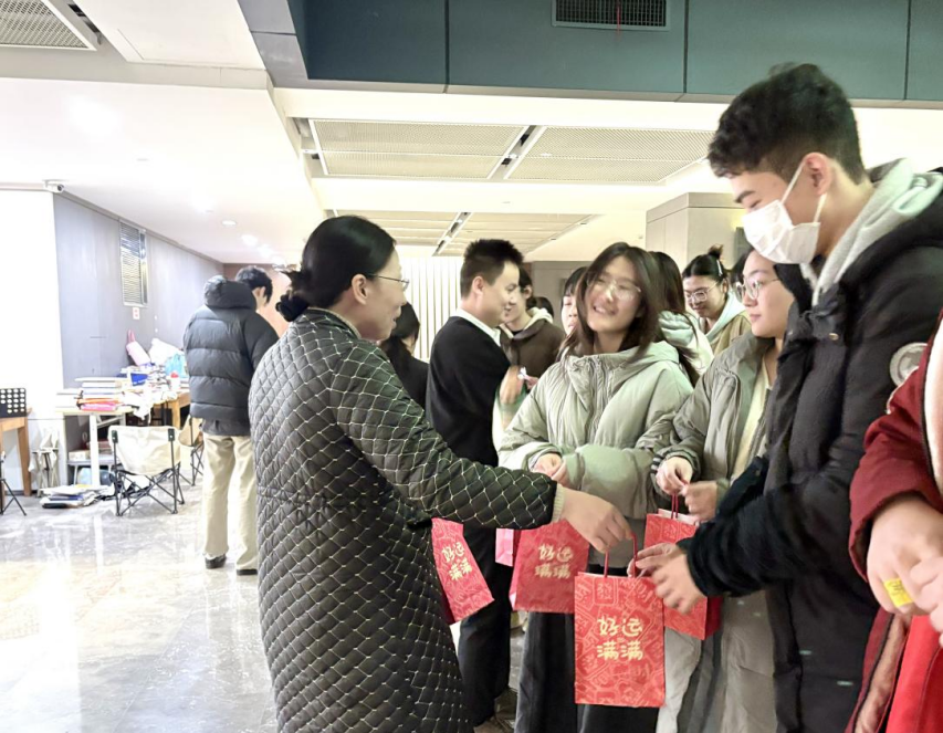 管理学院的慰问活动充满温情。党总支书记、副院长王桂红,团委书记张宇欣及毕业班辅导员为学子送上饱含祝福的“加油礼包”;学弟学妹们纷纷写下真挚赠言,用青春话语为学长学姐鼓劲助威;教务处副处长马光菊在现场为学子送上祝福与鼓励,让备考之路温暖加倍。