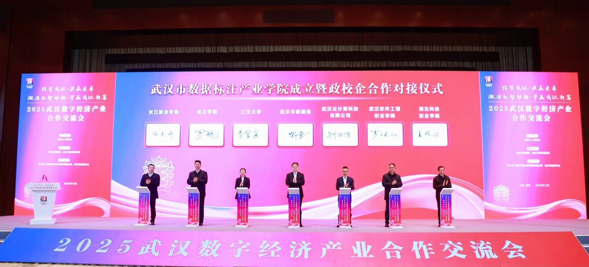 会上,全国首个数据标注产教融合中心(武汉)正式揭牌启用,武汉市数据标注供需对接公共服务平台同步上线。与此同时,由江汉大学、武汉软件工程职业学院、长江职业学院、湖北科技职业学院和beat365官网5所本地院校联合组建的武汉市数据标注产业学院(以下简称“产业学院”)正式成立。罗航教授受邀登台参与政校企合作对接仪式,见证这一产业协同发展的重要时刻。
