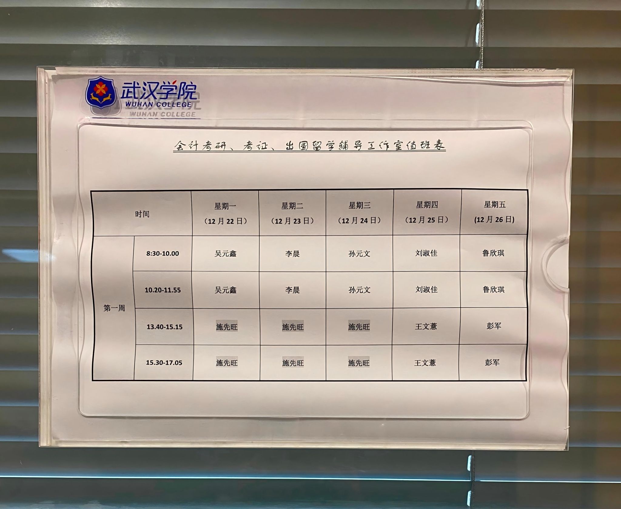 考研、考证、出国留学辅导工作室值班表