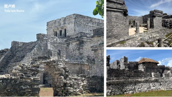 我们接着向东来到加勒比海岸的图卢姆(Tulum),这是建在海边悬崖上的废弃了600年的历史遗址,各个神庙、祭司行政建筑群以及城堡的灯塔,早已被大自然重新占领,四处爬行的黑鬣蜥巨蜥成为了这里的原居民。