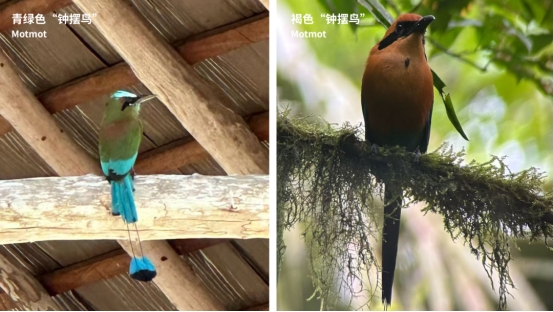 这里还是观鸟圣地,珍稀飞禽,有雌雄迥异的凤冠雉(Great Curassow),雄鸟羽毛几乎全黑并带有光泽,黄色喙瘤,雌鸟全身和羽冠呈棕褐或暗褐色,纹理丰富,初看还以为是两种不同的鸟类;还有像钟摆一样甩动尾巴的motmot(拟啄木鸟),我们跟着当地人戏称它“钟摆鸟”。