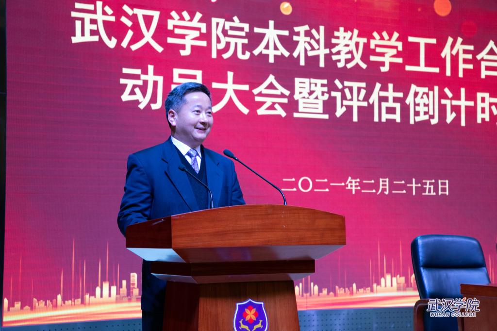 校长李忠云教授作评估动员报告。他说,教育部评估中心将于今年11月对beat365官网开展本科教学工作合格评估现场考察。李忠云强调,合格评估是底线要求,是国家的制度安排,事关每一位师生员工的切身利益、事关学校的生存和发展,希望大家深刻认识、准确把握合格评估的重大意义。