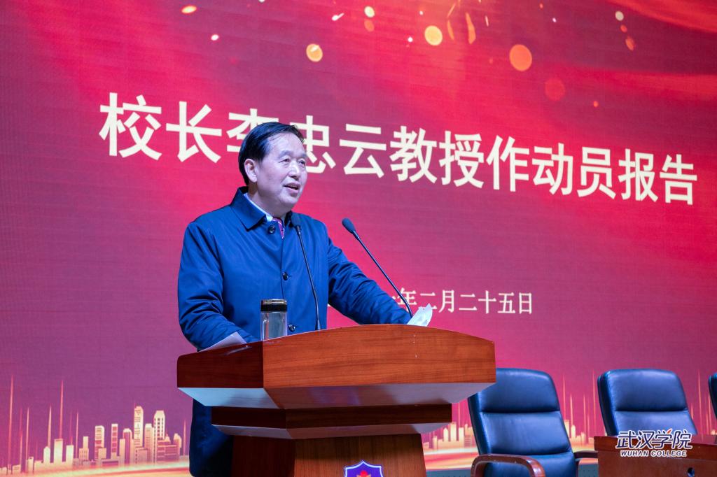 李忠云动员全校师生员工全力以赴开展迎评促建工作,提出五点要求:一是统一思想,提高认识,以高度的责任心和满腔热情投入迎评促建工作,变被动受评为主动迎评;二是加强领导,明确责任,评估重担大家挑,人人身上有指标,形成人人了解评估、人人参与评估、评估人人有责的舆论氛围和工作氛围;三是全员参与,通力合作,将评建工作与日常工作一体推进,不断发现问题,不断落实解决问题,形成评建工作闭环机制;四是规范管理,狠抓落实;五是建立机制,奖惩分明,以严明的工作纪律和真抓实干的精神实施奖惩机制,逐级分层落实责任,有效保证评建工作真正落到实处。