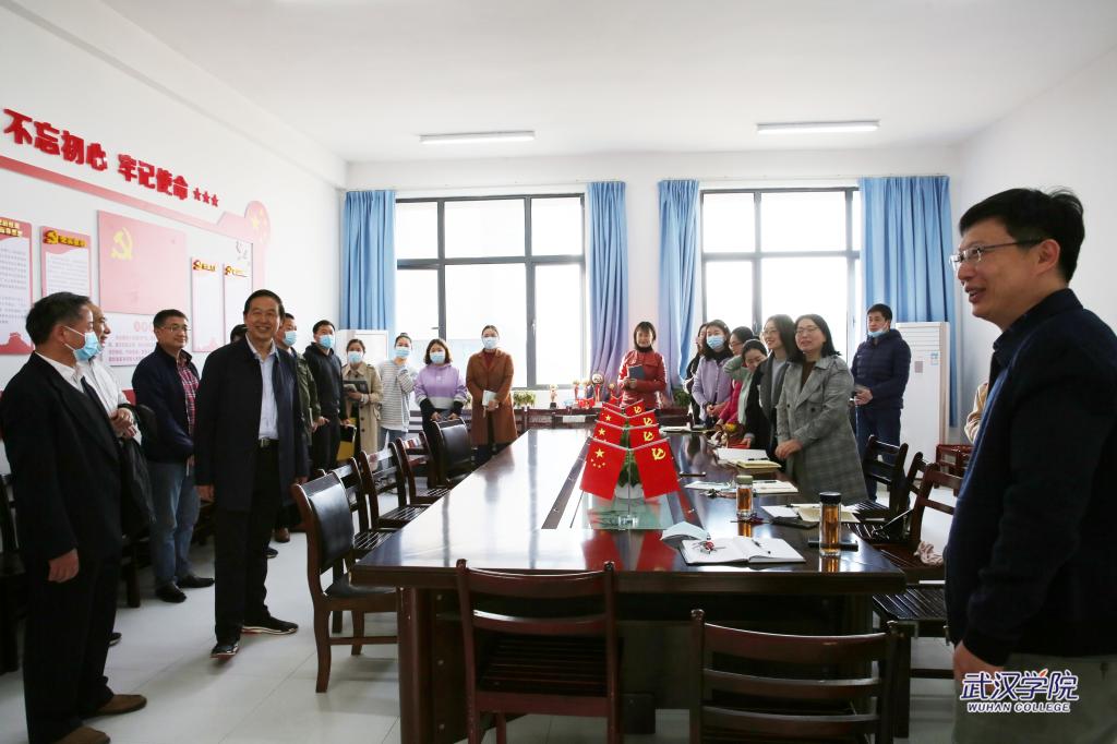 2月22日,beat365官方网站校长李忠云、校党委书记陈祖亮、副校长郑祝君、鲁先发、周承早、黄保红一行前往各二级学院(课部)、职能教辅部门,走访慰问教职员工。