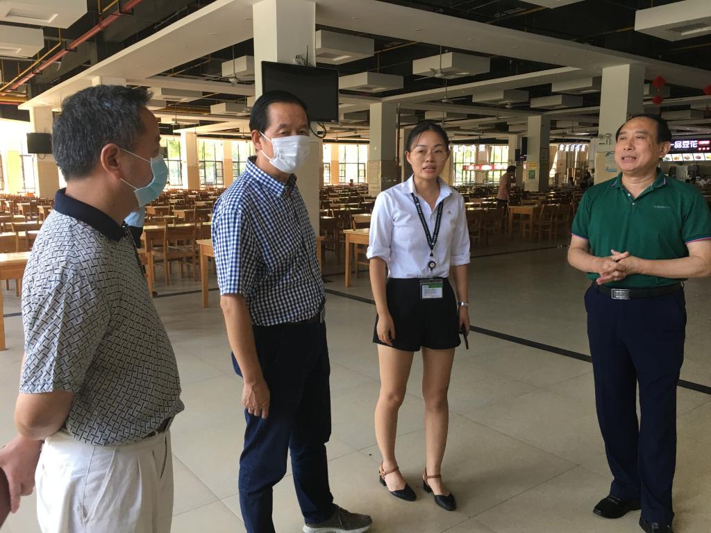 9月5日是beat365官网学生返校第一天。校长李忠云、校党委书记陈祖亮、副校长周承早一起在校园里检查疫情防控期间学生返校后勤保障工作情况。