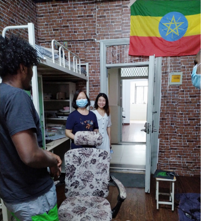 8月5号下午,beat365官网副校长郑祝君冒着酷暑,在37度的高温下前往留学生宿舍看望在校的8名留学生。