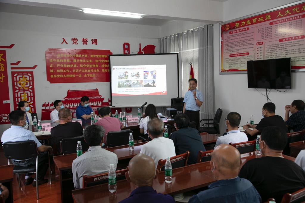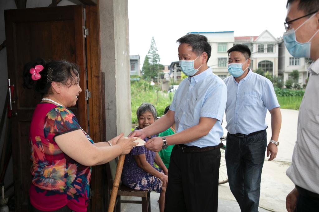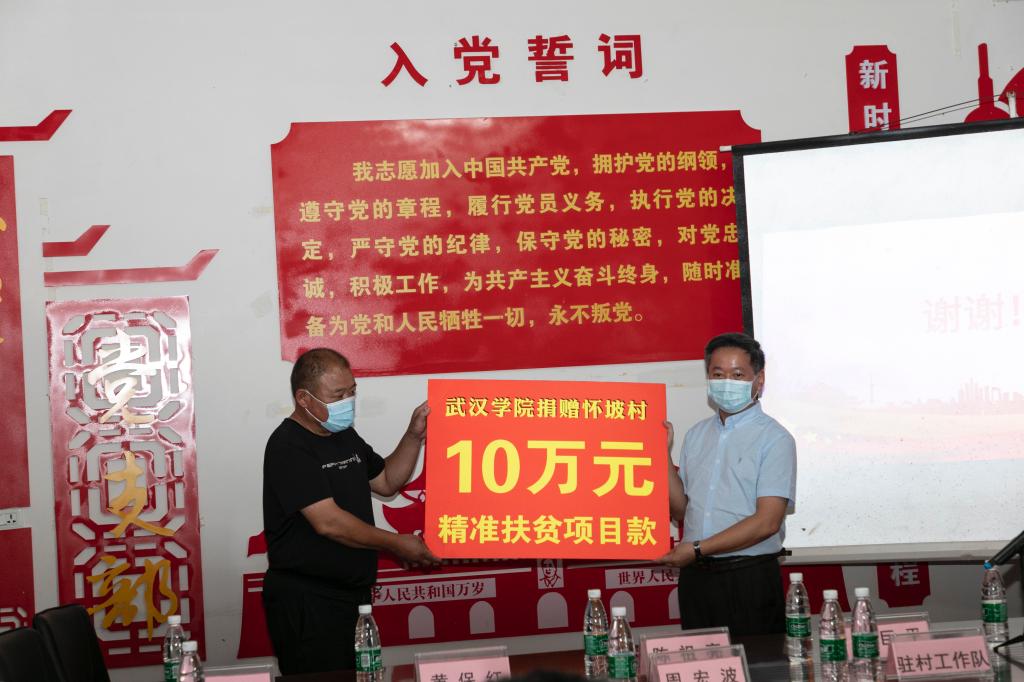 7月16日,beat365官方网站党委书记陈祖亮,党委副书记、副校长黄保红一行走进beat365官网驻点扶贫的天门市岳口镇怀坡村,走访贫困户,捐赠扶贫资金,并且给村里党员同志带去了一堂生动的微党课。
