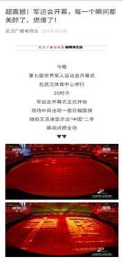 (《超震撼!军运会开幕,每一个瞬间都美醉了,燃爆了!》荣获湖北新闻奖二等奖)