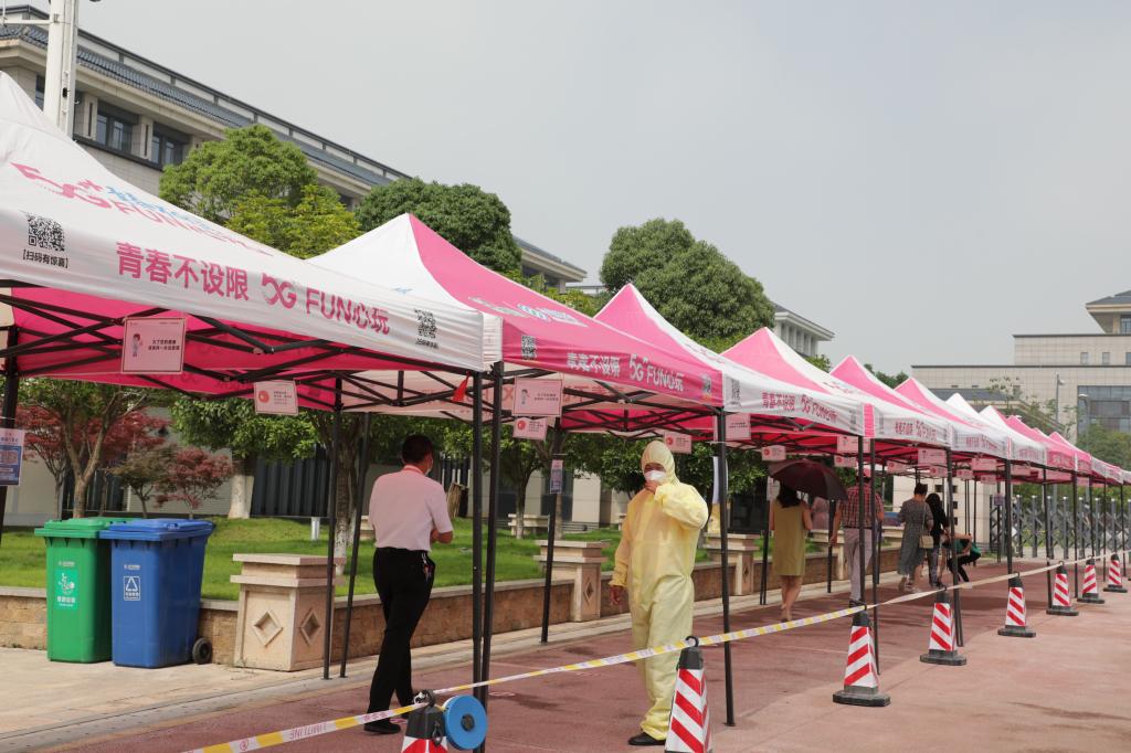 应急演练从东门入口开始,由教职员工扮演学生进校园、进宿舍、进食堂,模拟演练发现学生出现发热症状的场景。