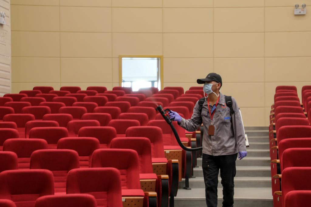 校园宿舍、食堂、报告厅开展消杀工作