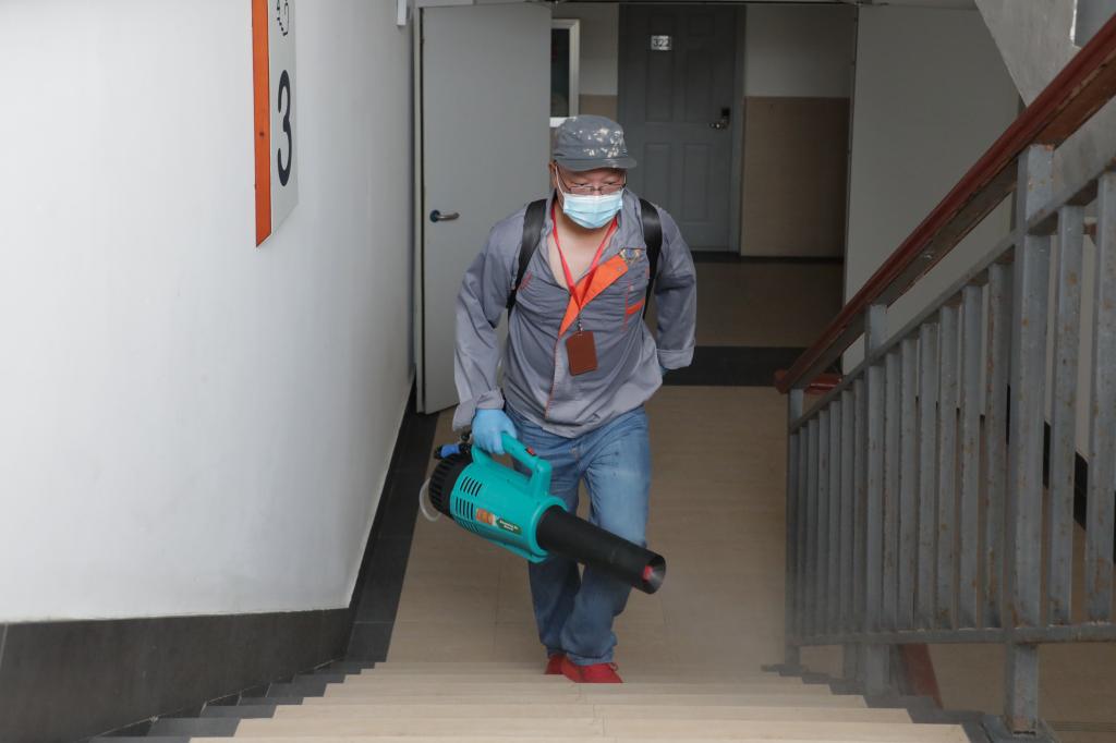 在消杀现场,后勤保障处、物业公司与消杀公司工作人员密切配合,严格按照卫生消杀管理标准规范操作。针对不同的场所,选择不同的消毒方式,对每间教室、每栋宿舍、每条道路,逐一排除安全隐患,对楼梯间、卫生间、洗衣房等公共空间进行全面喷洒消杀,不放过一个死角,确保彻底消毒,为校园构筑一道坚实有效的安全防护网。
