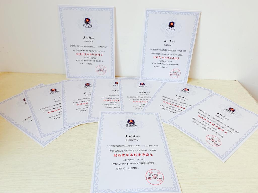 《人工智能在服装行业营销中的应用——以优衣库为例》等101篇毕业论文,选题新颖,撰写规范,综合知识运用较好,被评为校级优秀本科毕业论文,韦玮等78位指导教师因工作显著被评为校级优秀指导教师。学校为获得优秀本科毕业论文(设计)的学生和指导教师颁发印制精美的荣誉证书,以示鼓励。