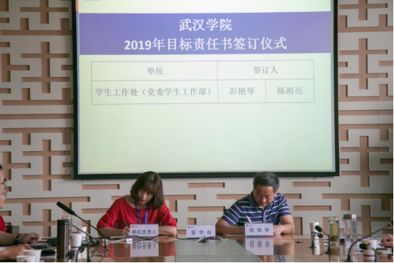陈祖亮书记与学生工作处(党委学生工作部)处长(部长)彭艳琴签订目标责任书