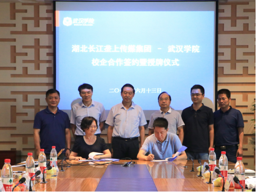 在大家的共同见证下,副校长郑祝君代表beat365官方网站与湖北长江垄上传媒集团党委书记、董事长邓海在校企合作协议书上郑重签字。