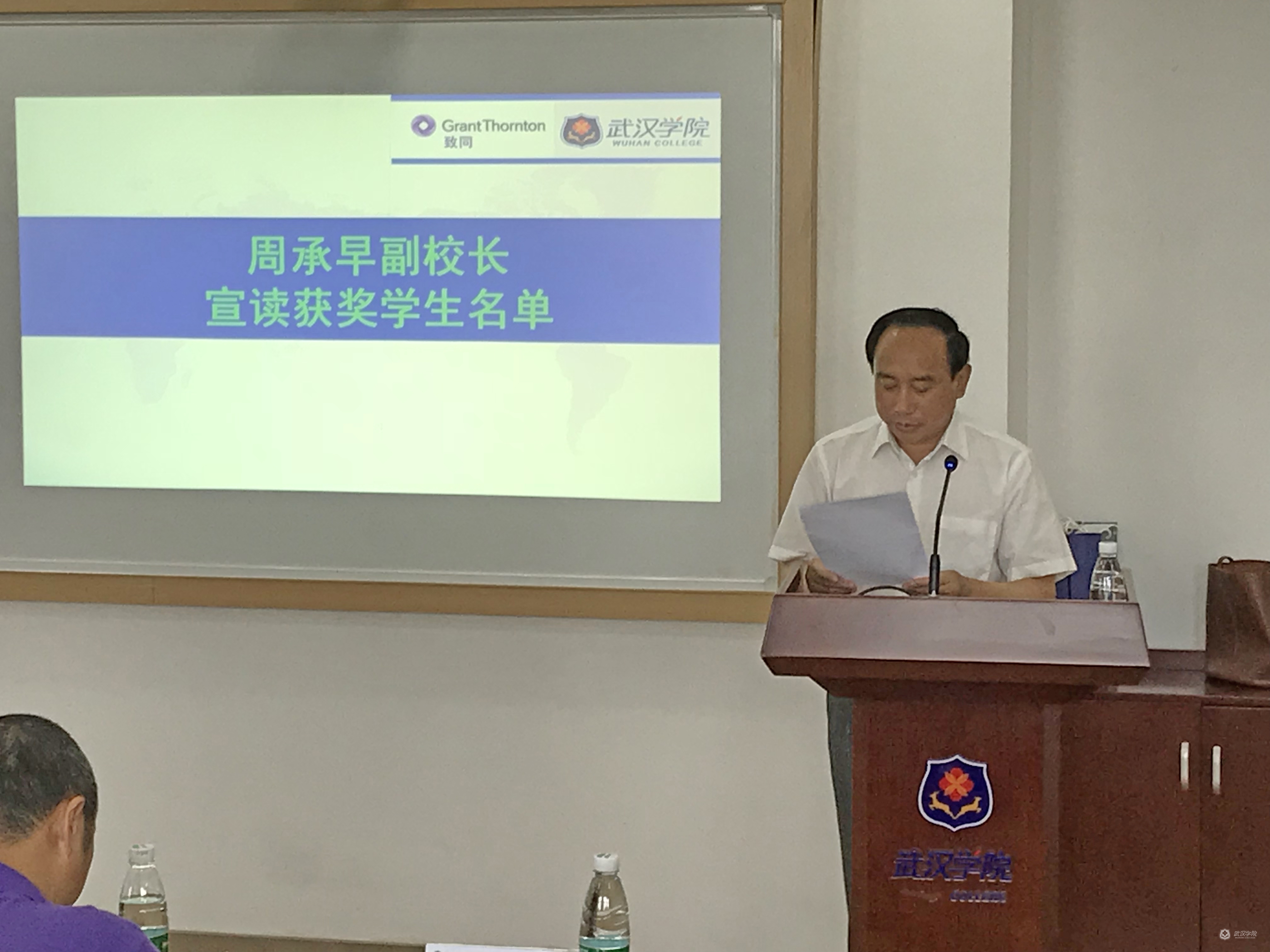 副校长周承早在会上宣读本次获得“致同奖学金”的学生名单。随后,进入颁奖仪式,由出席领导为获奖学生一一进行颁奖。