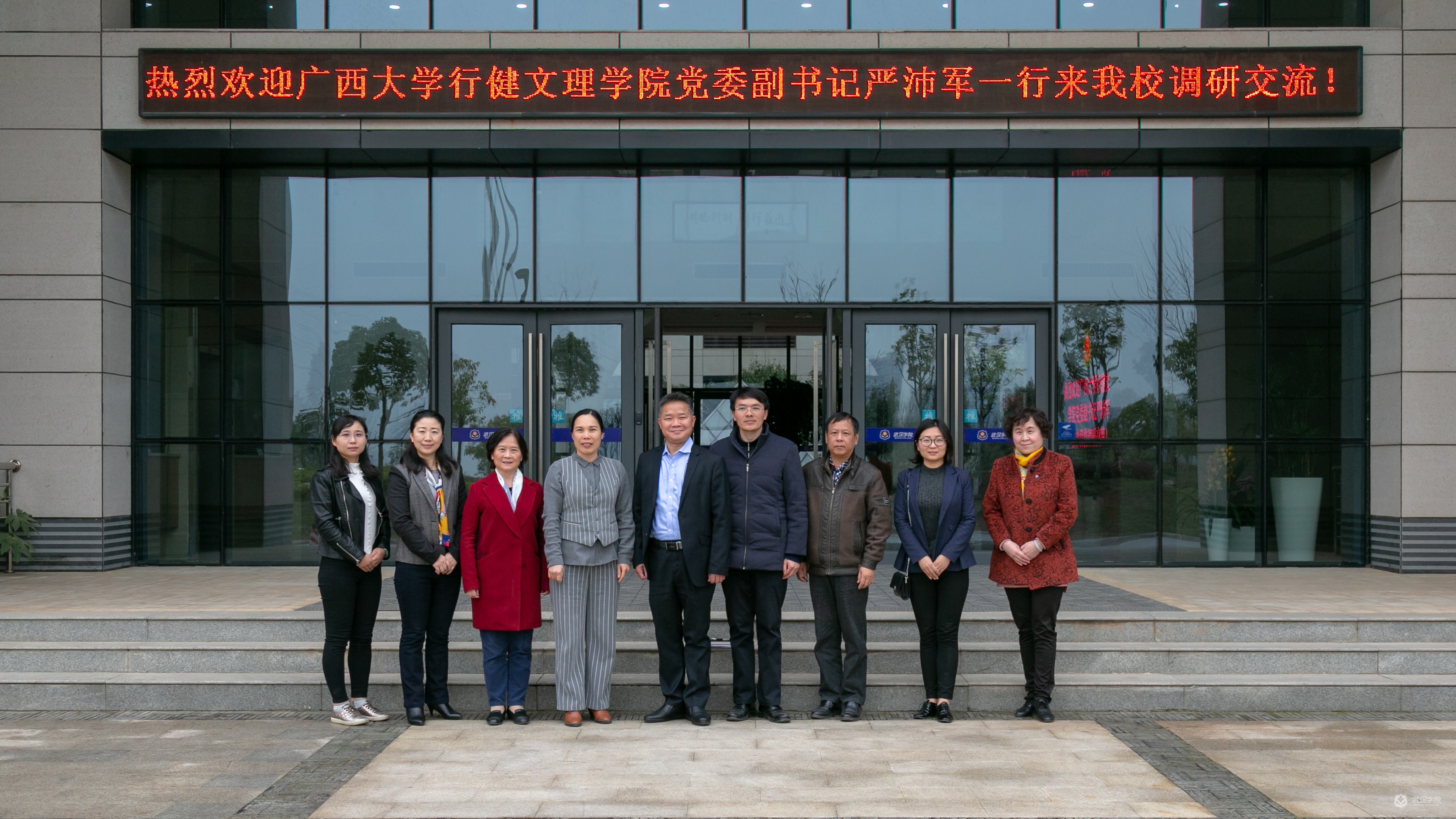 3月13日,广西大学行健文理学院校党委副书记严沛军、副院长陈树莲一行来beat365官网进行调研交流。副校长郑祝君、校党委副书记黄保红及教务处、财务处、全人发展教育中心等相关部门负责人在行政楼206会议室热情接待了来访人员。
