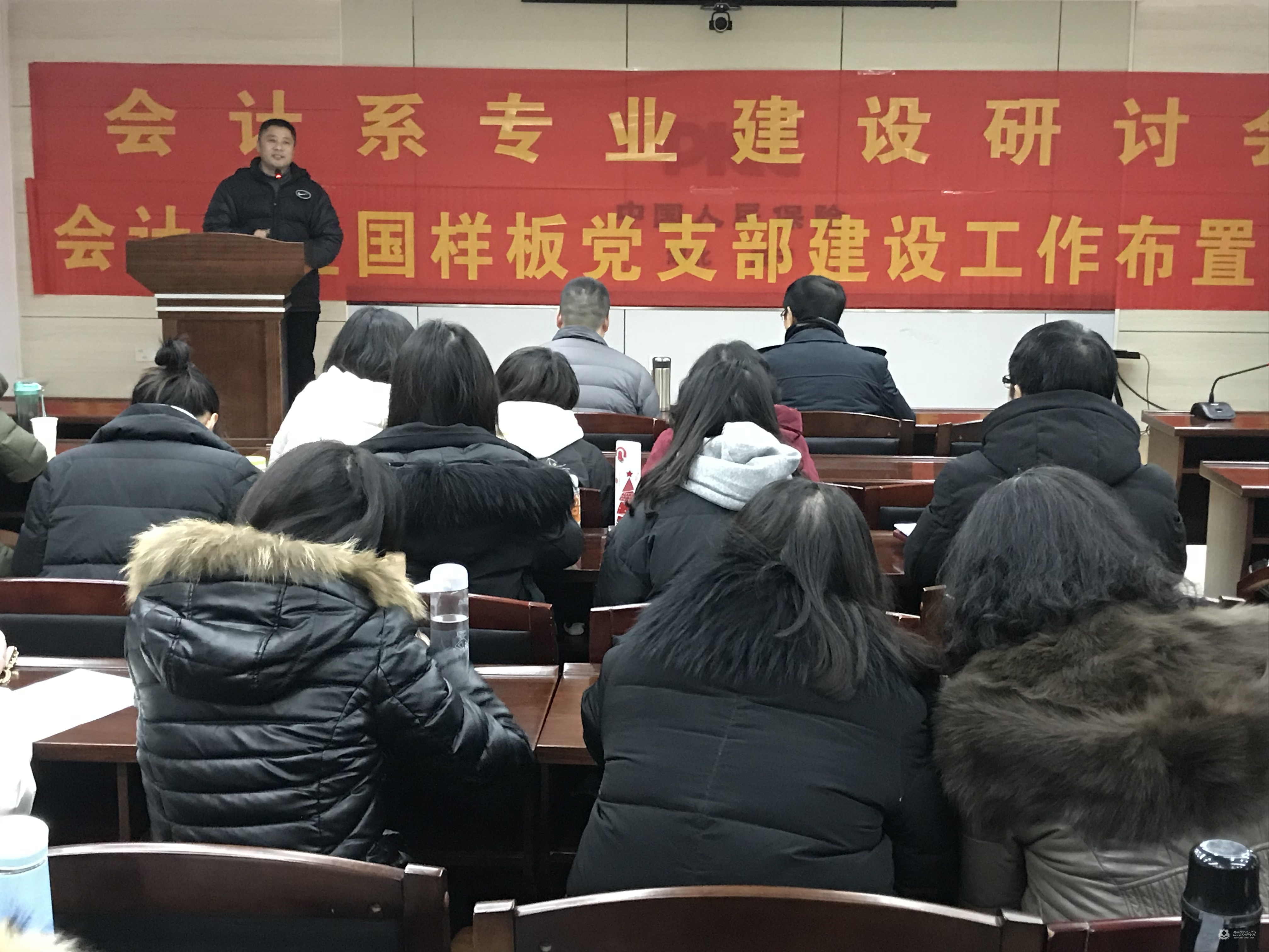 会计系范喜军书记就全国样板党支部建设具体工作在会上作了总体部署。他提出,2019年将是我们的 “内部装修”之年,我们要牢固树立教书育人、培养合格的接班人这一理念,树立为广大学生服务意识,扎实做好学生日常教学和思政工作,稳步推进教风、学风和班风等三风建设。随后,书记做了如下几项工作要求:1.以学生为本,抓好教风促学风,强化课堂教学质量。2.精准党建工作推进的2个项目。第一个项目就是在2年级和3年级设立班级导师和学业预警学生导师;第二个项目就是对104名培养对象安排导师,一名教工党员和一名学生党员组合参加培养工作。每位培养人最多培养3名学生,培养人与被培养人每月至少一次交流沟通。3.学以致用,学生实践育人的三个项目。“社会实践调查”项目、“传统家风”项目、“读一本经典”项目。这项工作已经在会计系已经做了部署和安排,在学工例会中也与班级辅导员进行了交流与要求,并在企业号发布了推送。