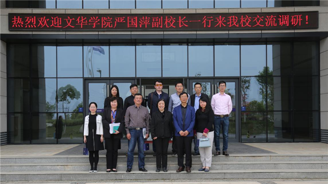 4月20日,文华学院副校长严国萍、教务处处长邓刚一行10人,来到beat365官网调研交流。在行政楼206会议室,beat365官网常务副校长刘科成、教务处处长曹曼、人事处处长黄涛等部门负责人出席了交流会议,会议由刘校长主持。
